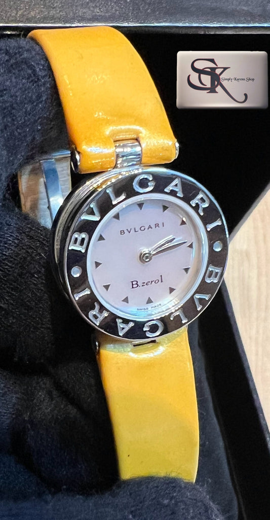 BVLGRI B-ZERO MOTHER OF PEARL DIAL PATENT LEATHER STRAP QZ WATCH