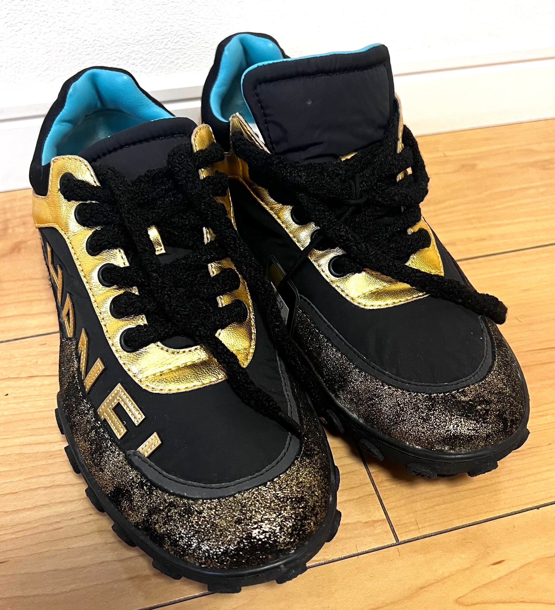 Chanel Low Top Cc Logo Black/Gold Sneakers Size39Eu /24CM (🇵🇭P18,920)